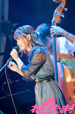 バンドメンバー紹介のあとは、アニソンカバーコーナー。「オシャレな雰囲気のなかで届けたい」と披露したのは大石昌良さんの「楽園都市」。「手術して高音が出せるようになったので原曲から4つキーをあげて歌うことにチャレンジしました」と、普段使わないキーを駆使して見事に歌い上げたのだった。