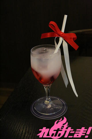 (グレナデンシロップ+ソーダ+ストロベリー+黒ストロー+赤リボン)