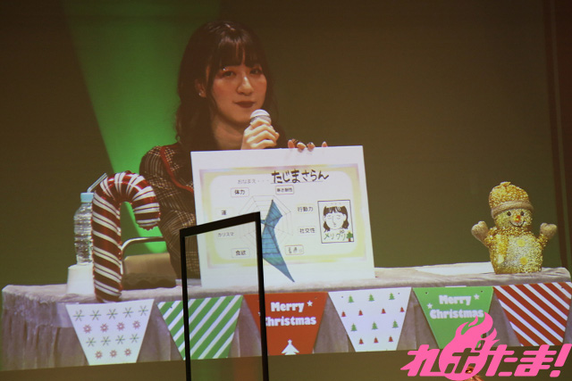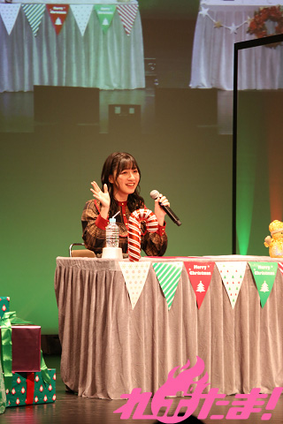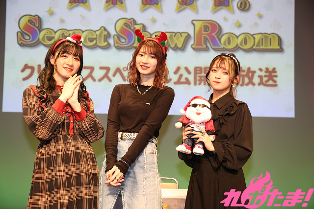 「サンタの格好とトナカイの格好をした私、どっちが見たい?」(田嶌さん)、「ほかの女の子に目移りしちゃうなんて、許さないんだから!」(川口さん)、「せっかくのクリスマスですし、先輩のおごりで飲みに行きましょう!」(黒木さん)と魅力的なセリフがファンにプレゼントされた。