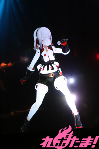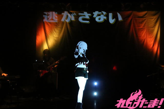 「『歌ってみた』動画を出したときからみんなの前で歌ってみたかった」というDECO*27の「二息歩行」を熱唱すると、P丸様。の「シル・ヴ・プレジデント」をキュートに歌い上げた。