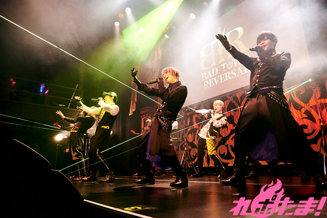 歌って踊る男性キャラクターに「カジノ」の要素を加えた、ディープ&非日常が味わえる新しいライブコンテンツ『BAD TOWN REVERSAL』。公開オーディションを勝ち抜いて選ばれた9人(石田流星(厳島 鏡 役)、島倉凱隼(一式和彩 役)、川井雅弘(大河原水崎 役)、向野存麿(両角省吾 役)、とまん(黄蜂智也 役)、小溝七夢(葉隠 立 役)、安部 瞬(古賀伊月 役)、小黒幸希(岩塚黎斗 役)、奥山敬人(稲垣弘也 役))が集結したイベントが1月16日(日)、東京・浅草花劇場で開催された。