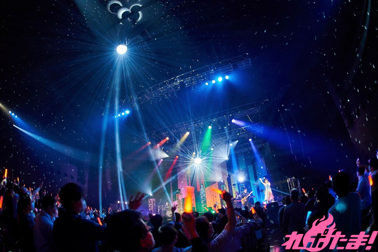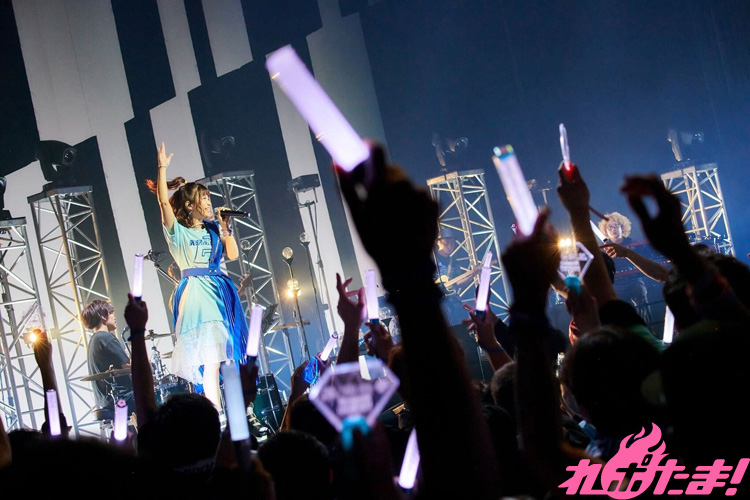 「Zepp Yokohamaでも、ゆるっとキャンプ、してくれますか?」とオーディエンスに問いかけると、TVアニメ『ゆるキャン△』OP主題歌「SHINY DAYS」、さらに同イメージソング「Isn’t It Fun?」と続ける。緑色のペンライトも相まって、まるでキャンプ場に来たような感覚に。