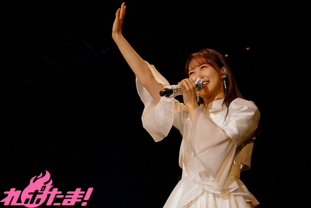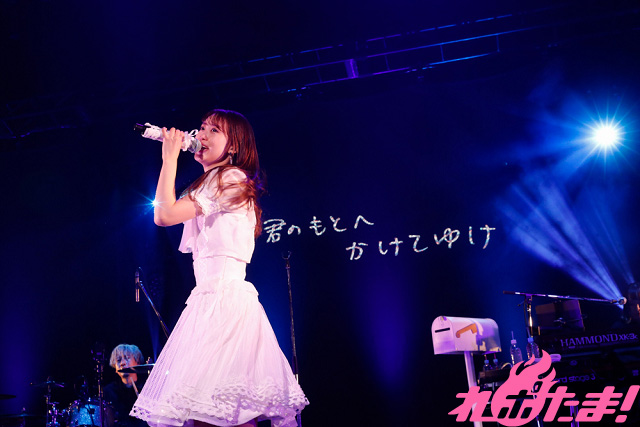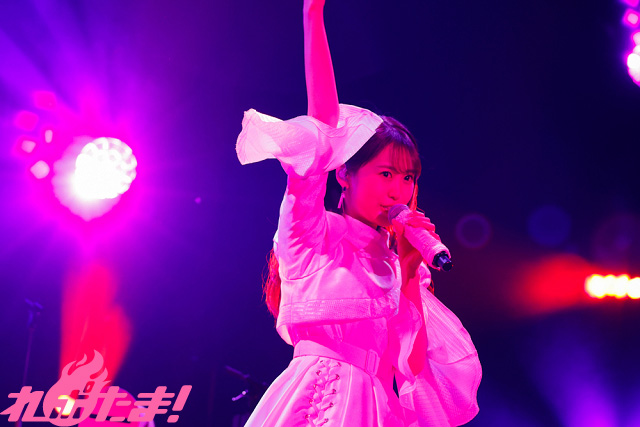 キュートな猫のポーズとともに「神×太陽×サマーパーティ」、大人っぽさが際立つ「Plastic / Jewelry Tune / スモモネ(「SHOW BY ROCK!! ましゅまいれっしゅ!!」より)」、「PRINCESS POLICY」と続け、さらに『劇場版プリパラ み~んなでかがやけ!キラリン☆スターライブ!』キャラクターソング「TRIal HEART~恋の違反チケット~」では、高音ボイスを会場に響かせた。