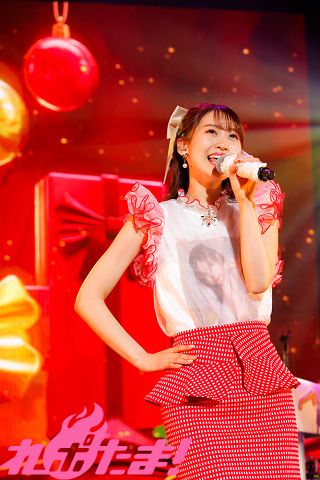 拍手に促されてアンコールがスタートすると、赤と白を基調とした衣装に着替えた芹澤さんがふたたびステージに登場。12月3日に誕生日を迎えた自身に向けて、ちょっぴり遅いバースデーソング「Merry Birthday!」を歌唱した。