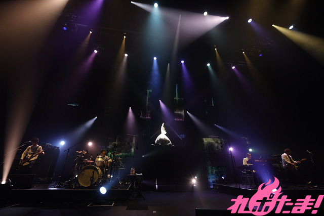 バンドメンバーが軽快なリズムを刻んだインストのあとは、カラフルなドレスに着替えた内田さんがふたたびステージに登場。ここからは「5周年ライブでもやりたかった」というメドレーコーナーがスタート。「Floating Heart」、「color station」、「泣きべそパンダはどこへ行った」など、バラエティに富んだナンバーを続けていく。最後はタオルを手に「Growing Going」を歌唱。