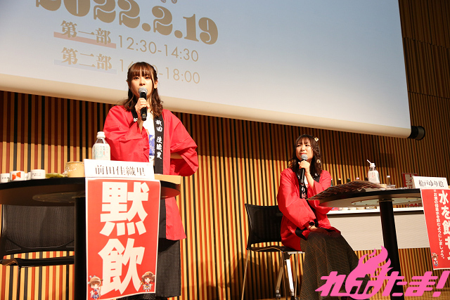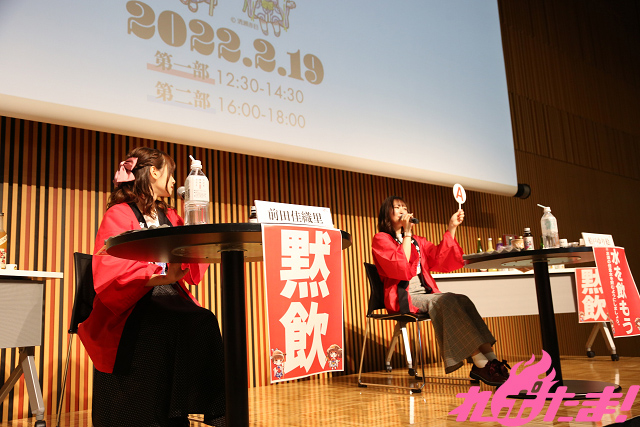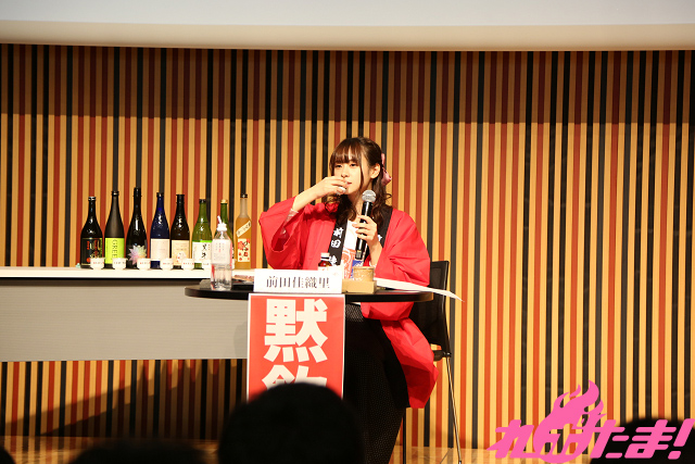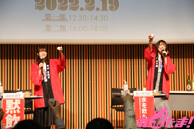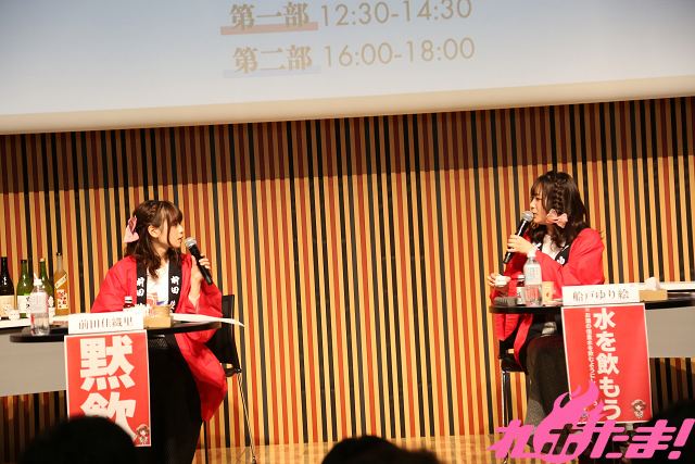 そして、前回に続いてお酒大好きな若手声優・前田佳織里さんと船戸ゆり絵さんによるトークショーも開催。前田さんは酒豪一家に生まれ、一方の船戸さんは「唎酒師(ききざけし)」の資格を取得したというつわもの。そんなガチの日本酒好きのふたりが日本酒愛あふれるトークを展開した。