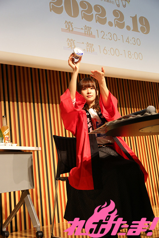 また、「無人島に1つだけ持っていけるとしたら『スマホ』と『日本酒』どっち?」、「一生これしか食べられないとして、〆の食べ物にするなら『アイスクリーム』と『ラーメン』どっち?」といった質問に2人が答えていく「究極の2択」コーナーや、酒蔵が用意した豪華なプレゼントが当たる「抽選会」などで盛り上がった。