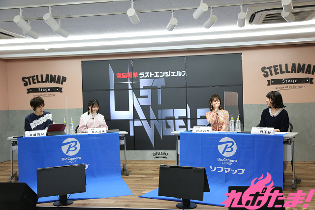 An event commemorating the release of this work was held at the Sofmap Akihabara Amusement Building in Tokyo on March 13 (Sun). With Nippon Broadcasting’s Hisanori Yoshida as the announcer and Hotaru’s voice actress Mizuki Hasegawa officiating the event, Lav’s voice actress Ayana Taketasu and Midi’s voice actress Sakura Tange took the stage.