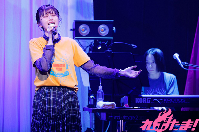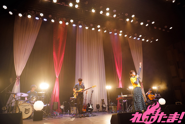 迎えたアンコールでは、ライブTシャツにロングスカートというラフな姿で登場した駒形さん。「クロワッサン」「はじめからきっと」と披露すると、バンドメンバーを再度呼び込む。駒形さんイチ押しの、オレンジ色のライブTシャツを着てこなかったメンバーたちをいじりつつ(笑)、「I Wish」を歌唱した。