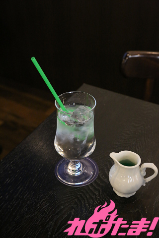 ノイントのようなクリアなサイダーに、香織のイメージカラーであるグリーンのゼリーを注ぎ入れ、魂を込めよう。ゼリーの食感がドリンクとよく合う!