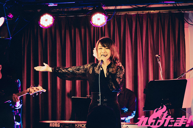 ライブはいよいよラストスパート。「あき☆らぼは次回で10回目。ディープさを残しつつ、もっと大きくしていきたいと思います! 新曲作りも日々頑張っていますので、今後ともよろしくお願いします!」と言い放った。そして「妖し月夜の縁より」「Sacrifice」と続け、最後に「冷たい夜に」をしっとりと歌い上げた。
