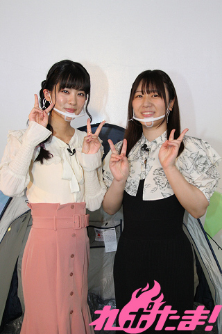 When talking about 3 shots taken with a mutual friend, Hina Sugata, they ended their free talk with a fun (?) “insider talk”. Ohnishi-san said “There was a rumor at the training school that Chiharu-chan was the sister of (voice actress artist) Aimi-san, but I was too nervous to actually ask for myself.” Chiharu-san brought up a story of her own: “When I first met Agupon (Ohnishi-san), she started playing “Agupon rock-paper-scissors” with me out of nowhere, and I thought “Does she work at a maid cafe or something…?” and it really took me off guard.” (laughs)