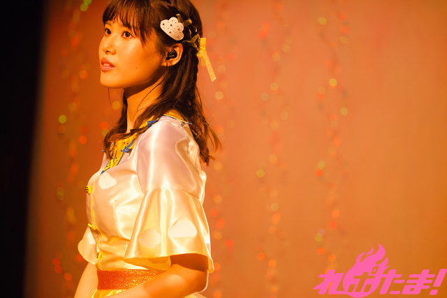 熊田さんのイメージカラーである黄色に染まった客席に向け、まずはこぶしを振り上げて「いいんだよ」を披露。さらに「ココロハヤル」を歌い上げると最初のMCでは「みんなの顔、メチャクチャ見えています!」と満面の笑顔で語り、このステージのために新調した衣装を様々な角度から見てもらうため、その場で一回転。ファンから求められる前にフライングで回ってしまうという、フレッシュな一幕も(笑)