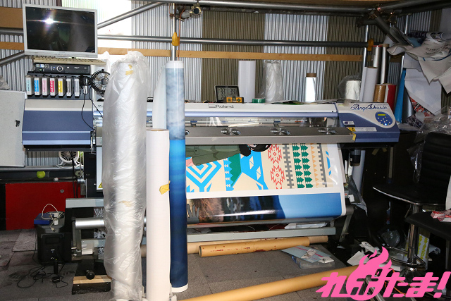 ▲製造工程の様子。大型プリンターで印刷されたオリジナルイラストが、車体に丁寧に張られていく。