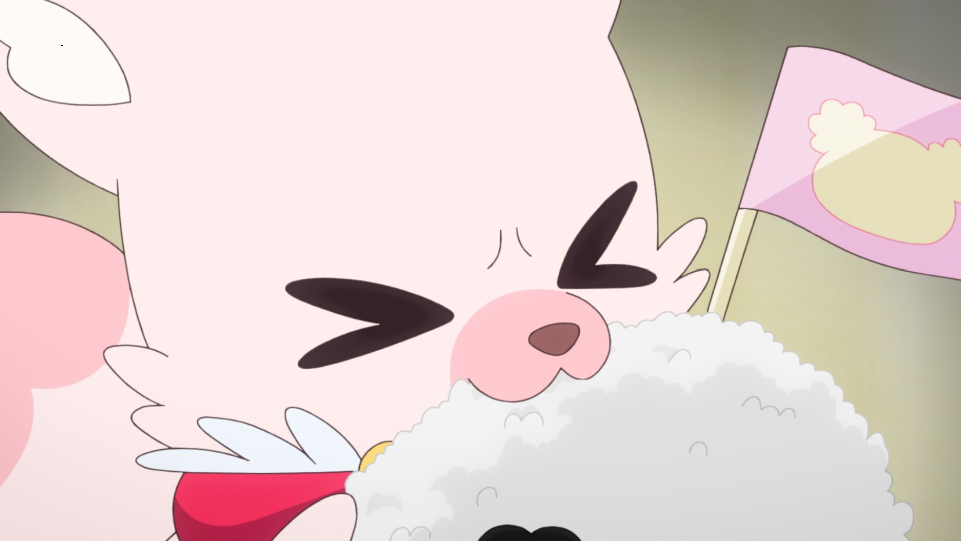 今回大活躍するコメコメが目を輝かせて何かを見つめているカットや、ドリーミアでもらえる入場者プレゼント<ドリーミアリング>を嬉しそうに身につける様子、今にも涙が溢れそうなまでに目を潤ませている姿、そして、おむすびに豪快にかぶりつく場面など、表情豊かなコメコメの魅力が溢れるカットが揃いました! 劇中でどんな活躍をするのか、是非、ご注目ください!