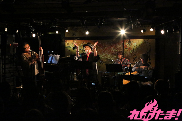 続くMCでは、ふたたび大阪公演の想い出が語られた。仕事の関係で先に帰京したmanzoさん以外のメンバーは「足湯」に浸かりにいったそうで「僕も入りたかった……」と苦笑いのmanzoさんだった。