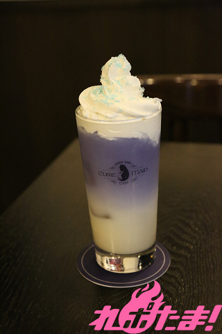 シオンの帽子のようなホイップに、美しい紫色のドリンク。