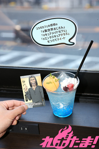 SNS(ツイッター、インスタグラム、フェイスブック)にハッシュタグ「#異世界おじさん」「#キュアメイドカフェ」をつけてコラボメニューや店内の様子がわかる画像をSNSに投稿した方のみご注文いただけます。投稿をスタッフまでご提示ください。