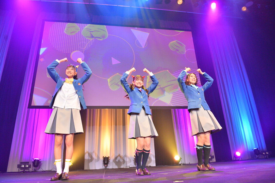 オープニングムービーが流れたあとは、野崎さん、根岸さん、野中さんによるユニット・おにぱんず!が「おにパパパン!パン!」をあいさつ代わりに披露。オーディエンスの手拍子に、キュートなダンスで応えていた。