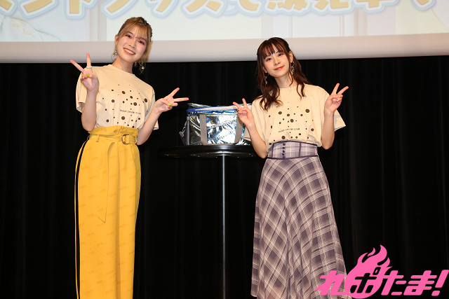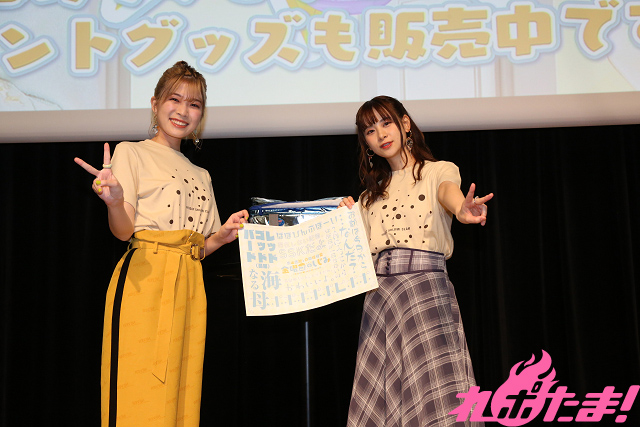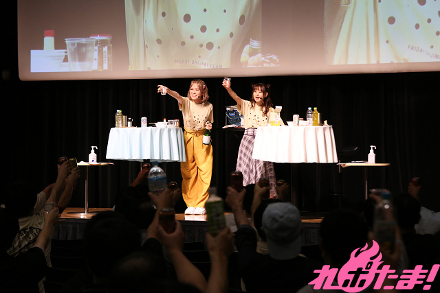 最後は「新しいグッズ紹介」コーナー。「ツンデレの『ツン』だけでグッズ紹介」(前田さん)、「限界オタク風にグッズ紹介」(青山さん)といったミッションに全力で取り組み、拍手喝采だった。