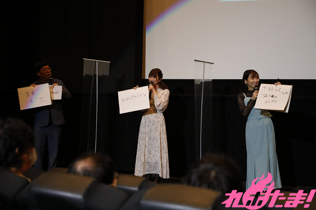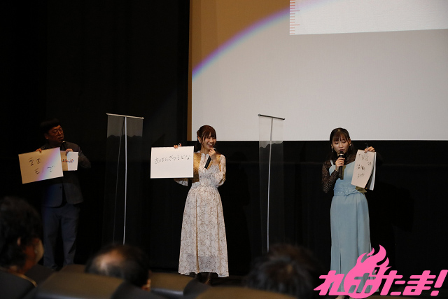 当日は第1話、第2話の上映後、お笑い芸人の天津 向が司会のもと、結愛せるふ(せるふ)役・稲垣 好、須理出未来(ぷりん)役・市ノ瀬加那、矢差暮 礼(くれい)役・佐倉綾音、日蔭 匠(たくみ)役・和氣あず未、幸希 心(しー)役・高橋花林、ジュリエット・クイーン・エリザベス8世(ジョブ子)役・大森日雅が登壇し、トークを繰り広げた。