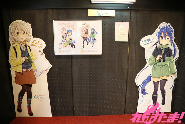 ▲『ぼっち・ざ・ろっく!』(まんがタイムきららMAX連載中/著:はまじあき)と『しあわせ鳥見んぐ』(まんがタイムきらら連載中/著:わらびもちきなこ)の2作のイラストやPOPの展示が行なわれている。