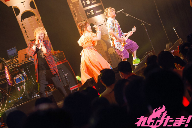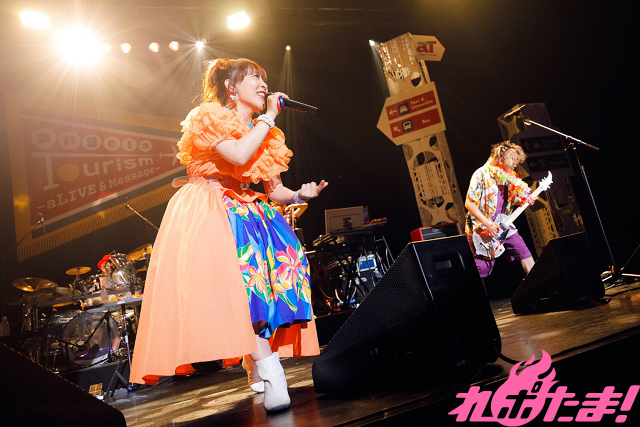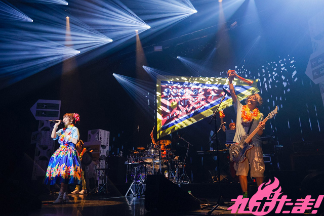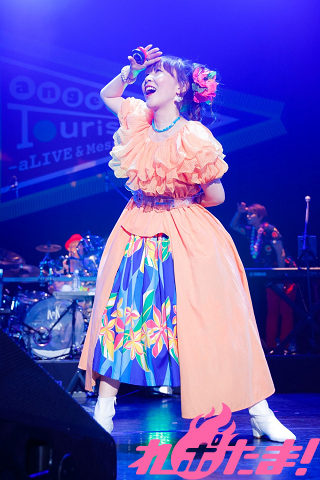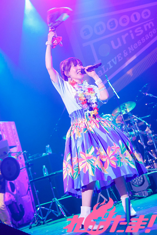 ライブ開始とともに、atsukoさんがさっそく「ファイナル やれんのか!」と客席をあおる。1曲目の「乙女のルートはひとつじゃない!」では、ツアーのために作成されたカスタネットを鳴らしながら歌唱し、客席にはカスタネットでのコール&レスポンス、さらにダンスを要求するなど、賑やかな幕開けとなった。