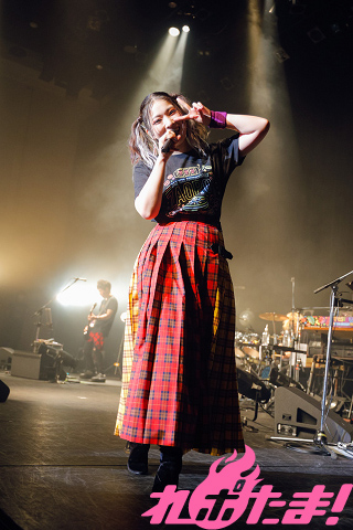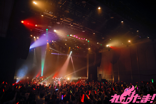 アルバム『ZAQPOT』にはタイアップ曲が満載ということで、ここからはアニメのOPテーマメドレー。まずは『ハイスクールD×D NEW』OPテーマ「激情論」で火を点け、『純潔のマリア』OPテーマ「Philosophy of Dear World」、『ささみさん@がんばらない』OPテーマ「Alteration」を歌い上げた。そして、続く『ムヒョとロージーの魔法律相談事務所』第2期OPテーマ「イノチノアカシ」は、コロナ禍もあり生バンドで披露する機会がなかったため「ようやくみなさんにお聴かせできました!」と感極まった様子だった。