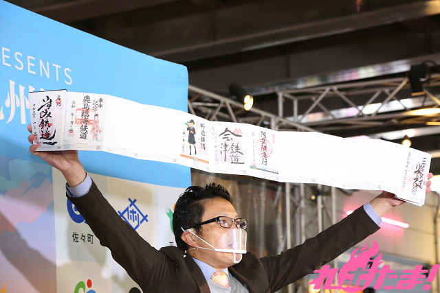 さらに南田氏は「数字とアルファベットで旅するMR(松浦鉄道)」と称した「松浦鉄道トリビア」を披露。「駅の数が国鉄時代の32駅から57駅に増えた」「駅間の距離がわずか200メートルの場所がある」などの豆知識を次々に紹介。また、寺社巡りの際にもらえる御朱印を集める「御朱印帳」ならぬ、特定の駅に置いてあるスタンプを押していく「鉄印帳」を持参。鉄道マニアライフの一端を披露していた。