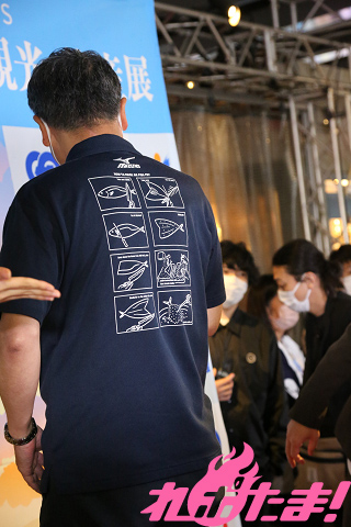 最後は友田市長が登場。松浦市はアジフライの名産地で、同料理を楽しめるお店が市内に35店舗あるそう(2022年10月現在)。友田氏いわく「アジフライの聖地を目指す」というマニフェストを掲げて市長に当選したとのことで「どんな食べ方でも美味しいですが、大根おろしにポン酢がオススメです」と紹介。アジフライの美味しい作り方が書かれたTシャツも着こなし、注目を浴びていた。