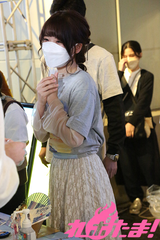 イベント後はポニーキャニオンブースに安齋さんが登場。店頭に立ち、ファンと交流しながら笑顔で『鉄道むすめ』グッズを販売していた。