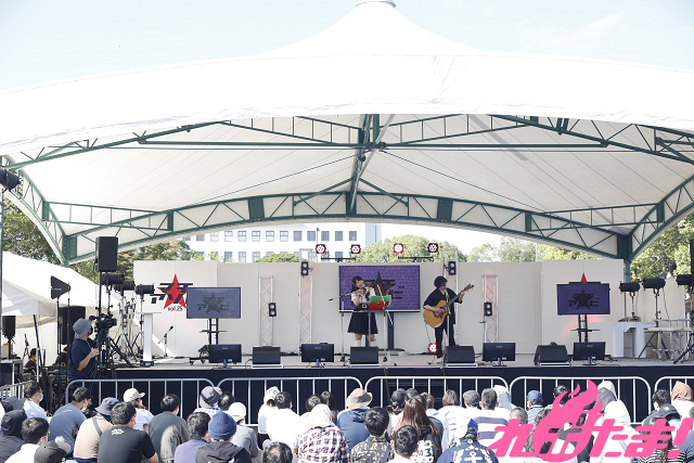 “徳島をアソビ尽くす”ことを目的とした複合エンターテイメントイベント「マチ★アソビvol.25」。そのクライマックスラン2日目となる2022年10月16日(日)、藍場浜ステージにてmicco(ボーカル・鉄琴)と菊池達也(ギター・ベース・ボーカル)によるオーガニックポップユニット・marbleのライブステージが開催された。