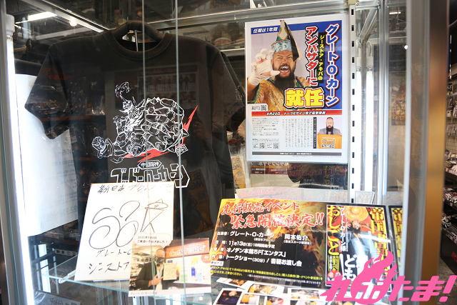▲店頭および同フロアには、オーカーン選手のPOP(新衣装)やサイン色紙などの展示も。