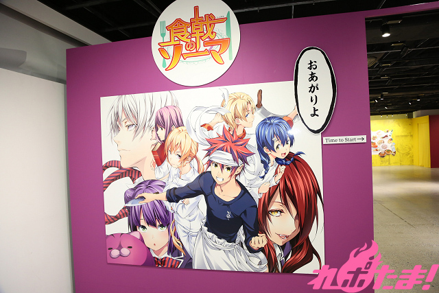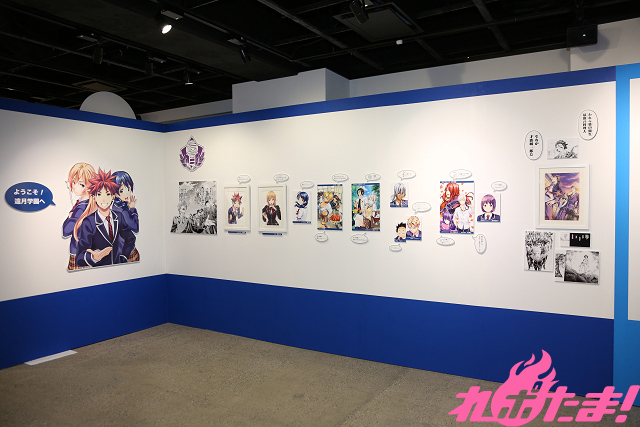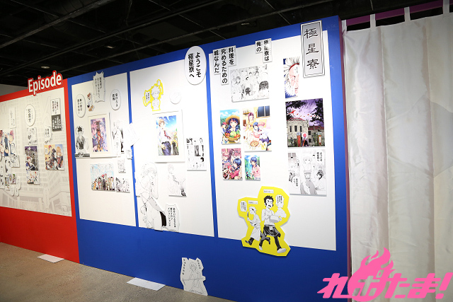 会場入り口には主要キャラクターの幸平創真、薙切えりな、田所 恵が描かれたパネルが設置されている。さらにその隣には附田氏、佐伯氏、森崎氏の直筆色紙が!