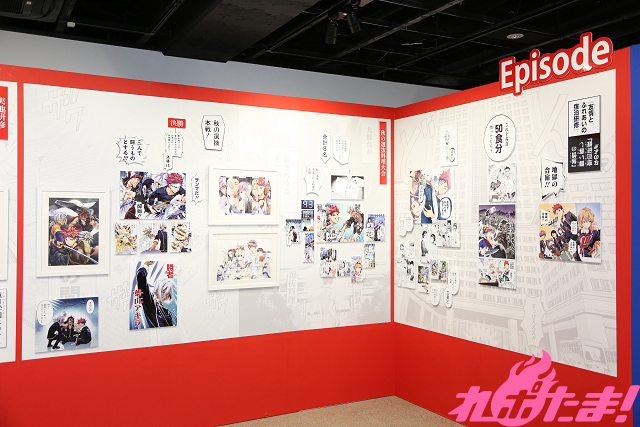 展示コーナーの入り口には主要メンバーが描かれたイラストがお出迎え。