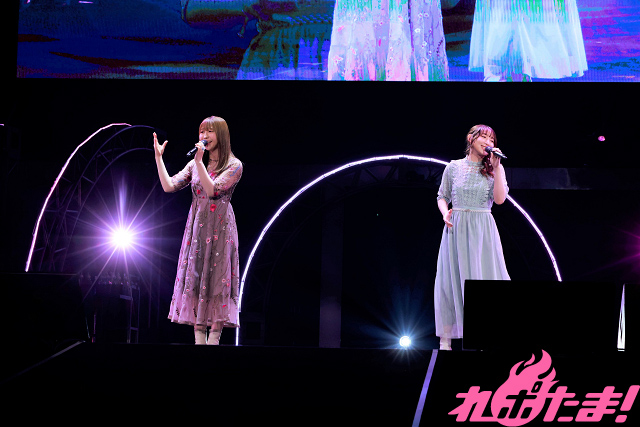 南條愛乃と安野さんが登場し、アニメ『D.C. ~ダ・カーポ~』OPテーマ「サクラサクミライコイユメ」をデュエット。横アリに一足早い春が訪れた。代わって黒いドレスに身を包んだTRUEさんがアニメ『炎炎ノ消防隊』OPテーマ「インフェルノ」を力強く歌い上げた。