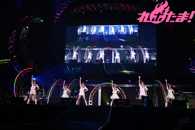 ここでシークレットアーティスト・i☆Risが登場。結成10周年を迎えた5人は妖艶なダンスとともに「Queens Bluff」を歌唱し、続いて10年間の想いを込めてオリジナルメドレーを披露。こぶしを振り上げながら会場を縦断し、色とりどりに光るペンライトを持つオーディエンスに向けて手を振っていた。