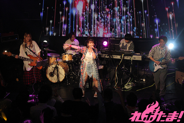 「私はこれまで先輩が作ってくれた道を歩んできましたが、そろそろ『夢を与えるポジション』になってきたと自覚しています」とコメント。そして「今年は『アニソンシンガー』という職業をもっと広めていきたいと思います!」と力強く宣言。ゲーム『サマータイムレンダ Another Horizon』OPテーマ「燈灯」をしっとりと歌い上げると、アニメ『サマータイムレンダ』2ndOPテーマ「夏夢ノイジー」を激しく、さらにアニメ『この世の果てで恋を唄う少女YU-NO』OPテーマ「この世の果てで恋を唄う少女」をコール&レスポンスとともに披露した。