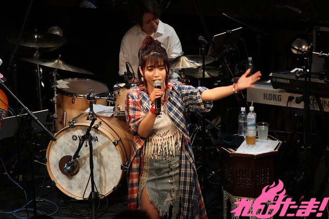 続いてバンドメンバーの紹介。ベースのチャッキー(伊藤千明さん)以外(ドラム・坂本暁良さん、キーボード・エドケンさん、ギター・清水”カルロス”宥人さん)は初めましてとのこと。しかし亜咲花さんの持ち前のコミュニケーション力で、あっという間に仲よくなったそうだ。