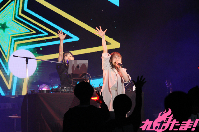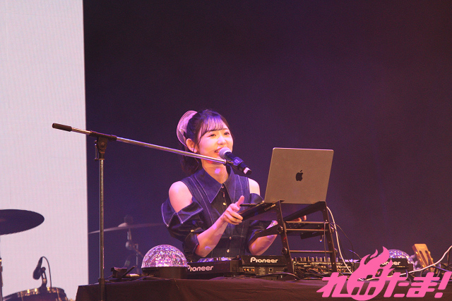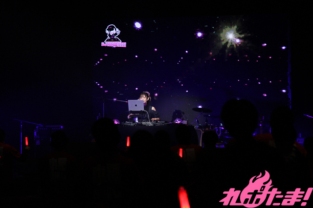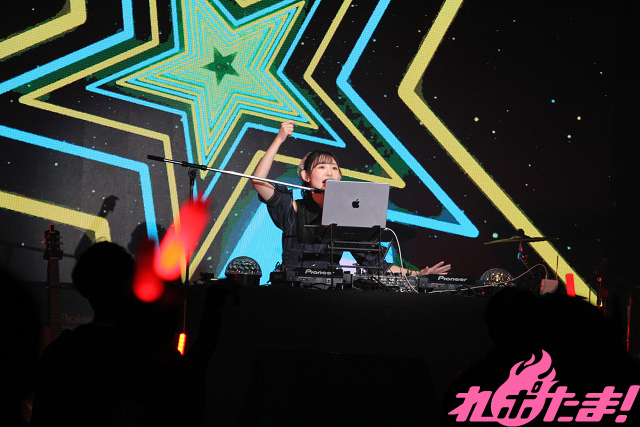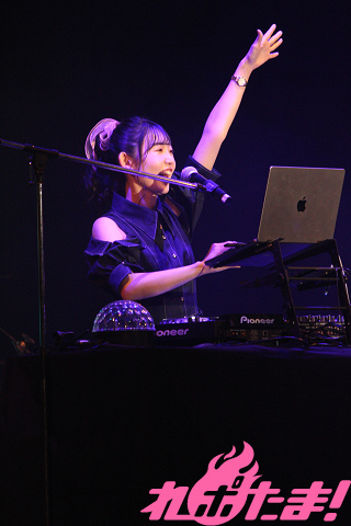 「第1部」が開幕すると、小原さんがステージ中央に用意された機材を使ってDJプレイを披露。彼女が朝日六花役で出演している『BanG Dream!』内に登場するユニット「RAISE A SUILEN」の楽曲をはじめ、アニメ『双星の陰陽師』珠洲(CV:若井友希)のキャラクターソング「激おこ☆Guilty」など、アップテンポなナンバーを次々に繰り出していった。