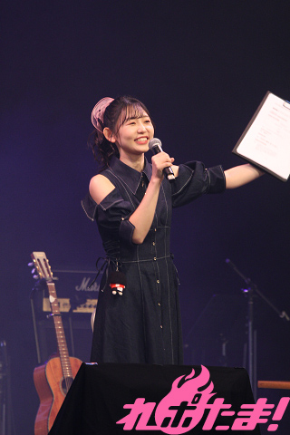 昨年も好評だった「小原莉子を褒めよう」コーナーは「第1部」「第2部」ともに展開。「小原さんをほめるメッセージ」を事前に募集。選ばれたファンがステージに上がり、小原さんに直接メッセージを贈る、という企画だ。