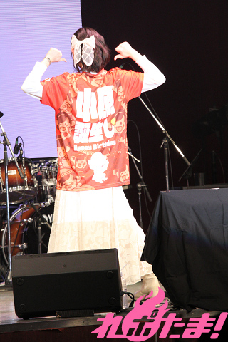宴もいよいよたけなわ。一度ステージの袖に戻った若井さんは「ぎふでま2」の人気イベントグッズの1つである「小原単推しTシャツ」の誕生日特別仕様「小原誕生し(たんおし)フルグラフィックTシャツ」に着替えて再登場し、会場を盛り上げた。
