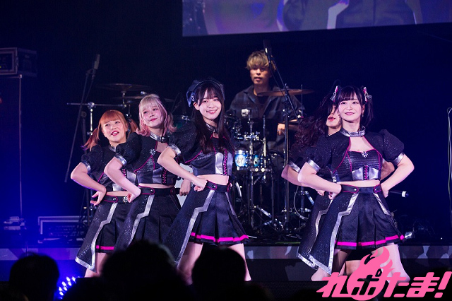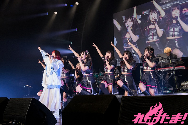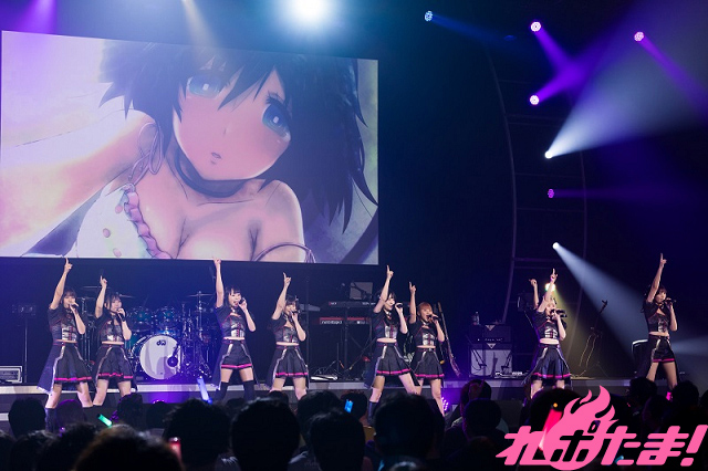 続いては純情のアフィリア初となる生バンドでのステージ。現在放送中のアニメ『痛いのは嫌なので防御力に極振りしたいと思います。2』OPテーマ「この盾に、隠れます。」を歌唱すると、FRAMと一緒にアニメ『痛いのは嫌なので防御力に極振りしたいと思います。』OPテーマ「究極アンバランス!」を投下し、場内を盛り上げた。