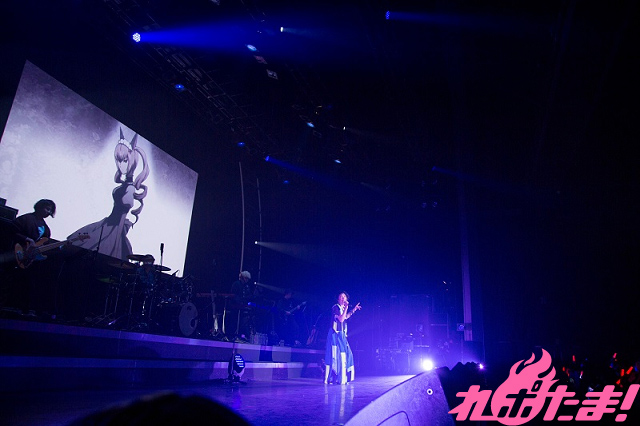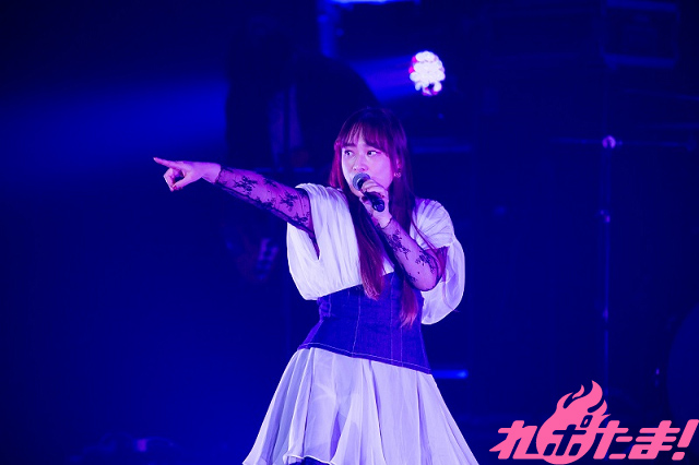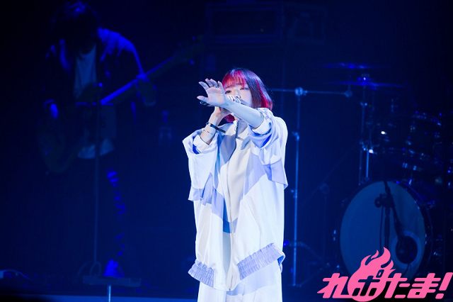 MCでは「アニメ『Occultic;Nine-オカルティック・ナイン-』EDテーマ「Open your eyes」でデビューしてから7年経ち、すっかり大人になりました!」と笑顔で語る彼女。ゲーム『サマータイムレンダ Another Horizon』OPテーマ「燈火」を歌唱すると、ゲーム『ANONYMOUS;CODE(アノニマス・コード)』グランドEDテーマ「Mob’s God’s」を初披露。さらにアニメ『ひぐらしのなく頃に 業』OPテーマ「I believe what you said」を歌い上げた。