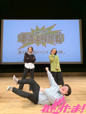 本渡さんはアニメ『競女!!!!!!!!』で自身が演じた「青葉風音」の出身地が広島であることを絡めた見事なネタを披露。河瀬さんは、自身の出身である「千葉県マン」として、あるあるネタをたっぷり詰め込み、客席を沸かせた。