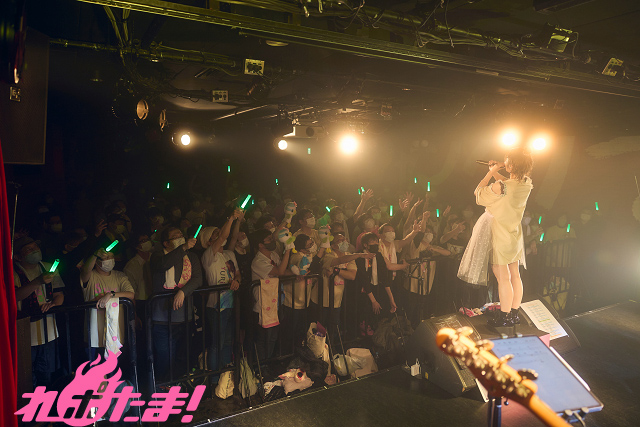 一度下りた幕がふたたび上がると、ライブTシャツをドレス風にアレンジした姿のYURiKAさんが登場。ロケットに再点火するがごとく「#ザキャッチ」、「baby baby flow」、そして「ライブでの声出しがOKになってから、進化しているのを感じる」という「Crave」と一気に歌い上げた。