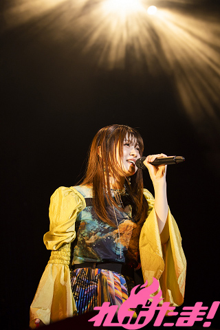 続いて、自身がヒロイン・リン役を務めたテレビアニメ『LOST SONG』からメドレーを披露。「彼女に『歌ってほしい』と言ってもらった気がします」と、オープニング主題歌「歌えばそこに君がいるから」を歌い上げた。