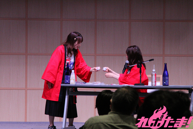 大型連休でさまざまな行事が行なわれているなか、足を運んでくれたオーディエンスとともに乾杯すると、イベント前に行なわれた「奉納の儀式」について話す2人。
