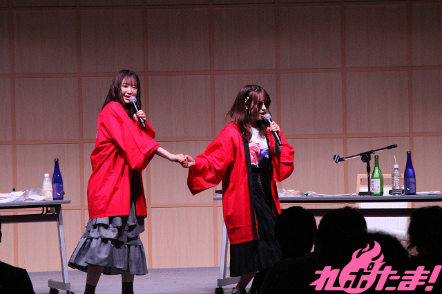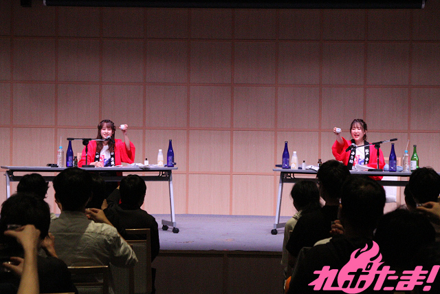 なお来場者に対し、「第1部」では「カマンベールピスタチオ/たらのあぶり焼」、「第2部」では「米沢牛のサラミ/しらすチップス」が酒の肴として配られ、ステージ上の2人と一緒に舌鼓を打っていた。