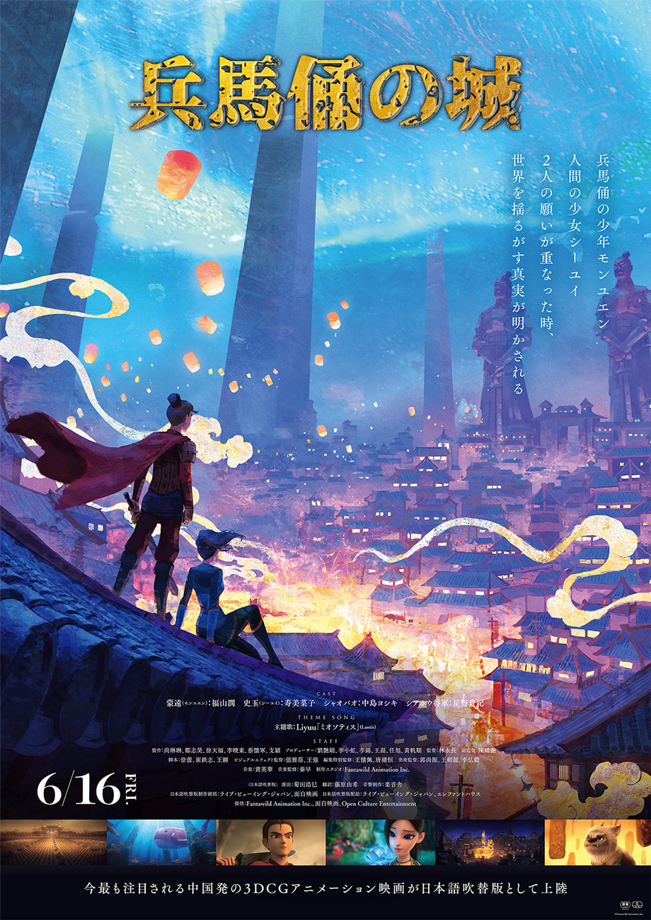 兵士や馬のかたちをした古代中国の副葬品・兵馬俑。神から命を授けられ、心を持った兵俑の少年・モンユエンと家族を奪われた人間の少女・シーユイを中心に描かれる中国の長編フルCGアニメ映画『兵馬俑の城(へいばようのしろ)』。日本が誇る豪華声優陣が出演する日本語吹き替え版が全国公開中だ。日本国内で行なわれた中国映画の上映企画「電影祭」で字幕版が上映され、話題を呼んだ本作が新たな形で視聴者に感動を与える!